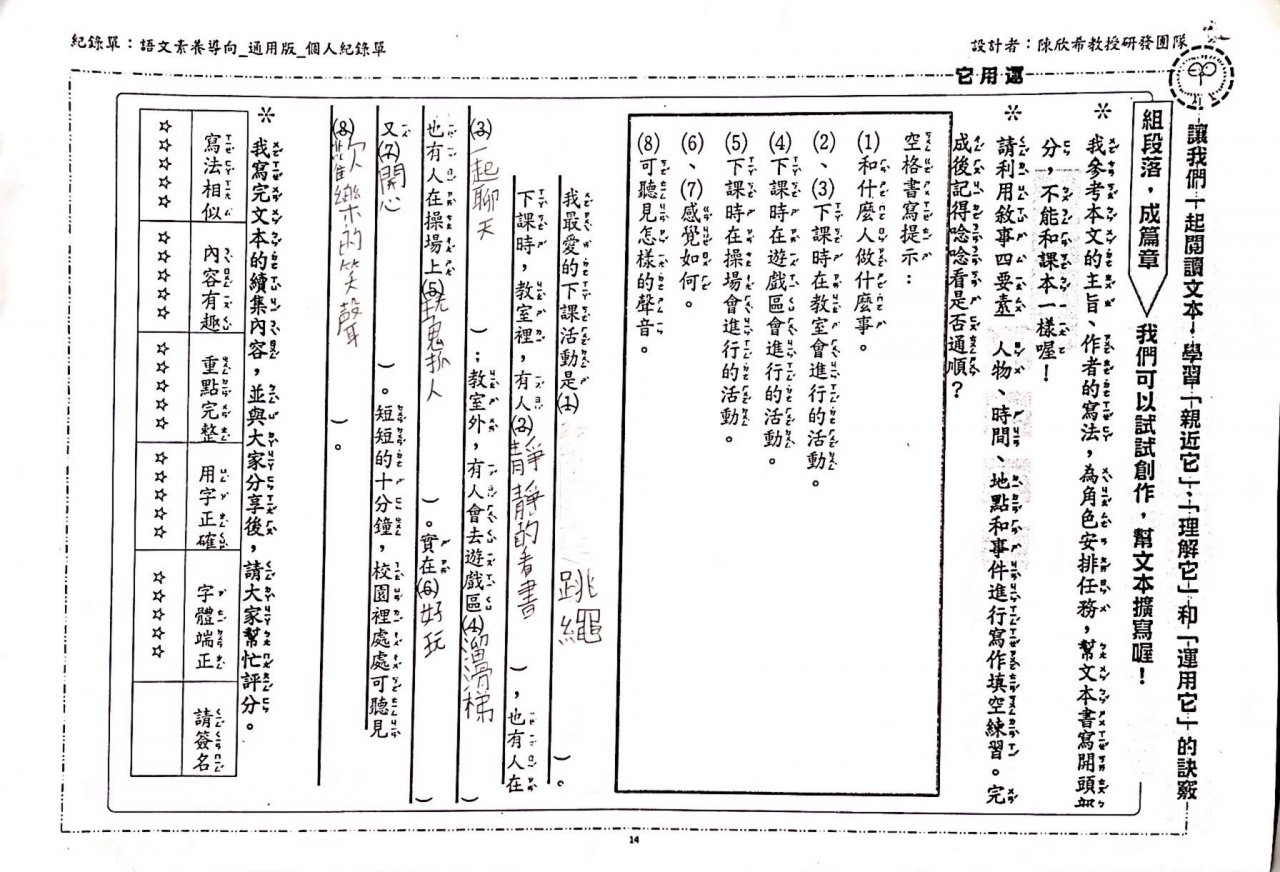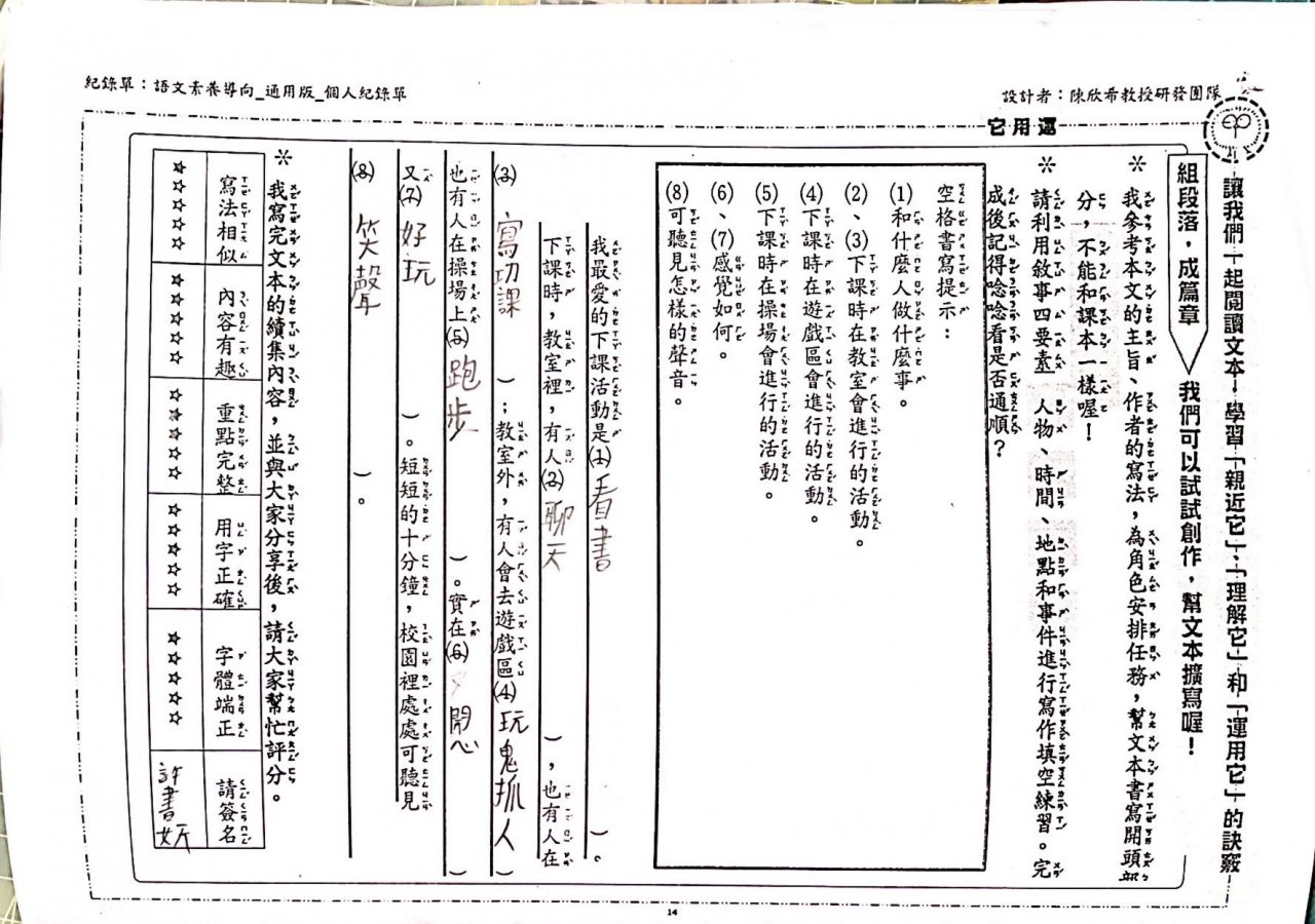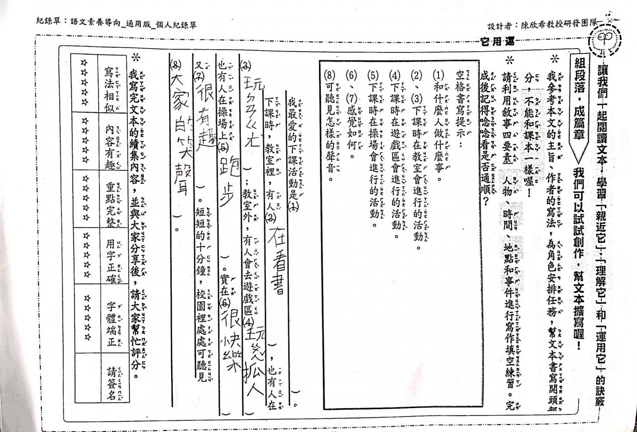 第三課下課十分鐘紀錄單