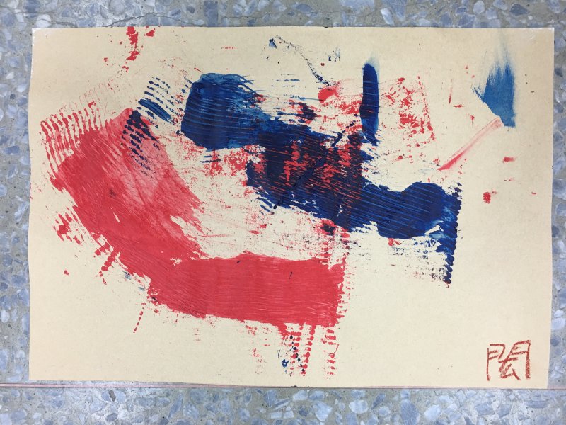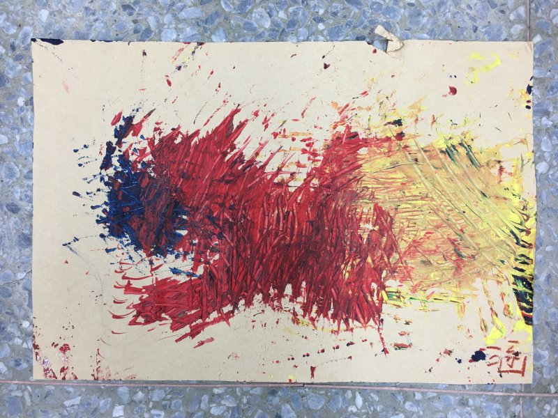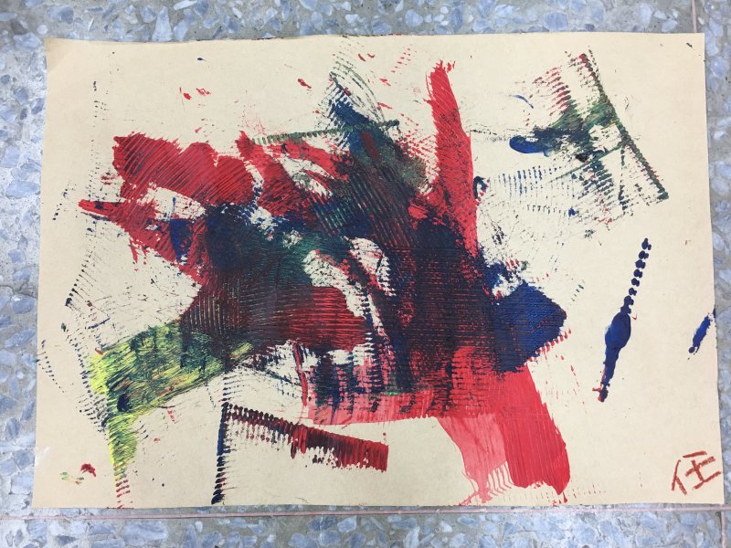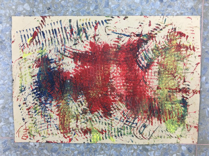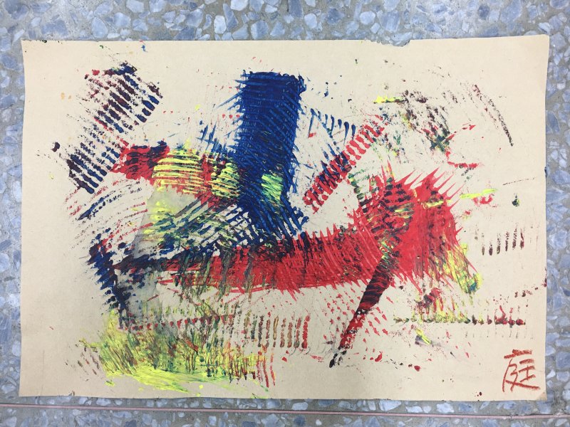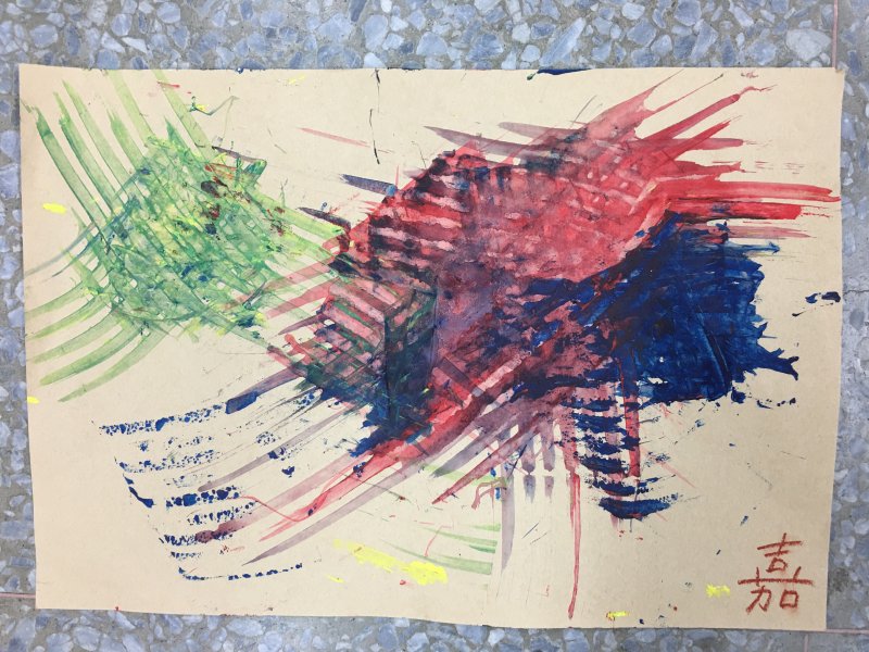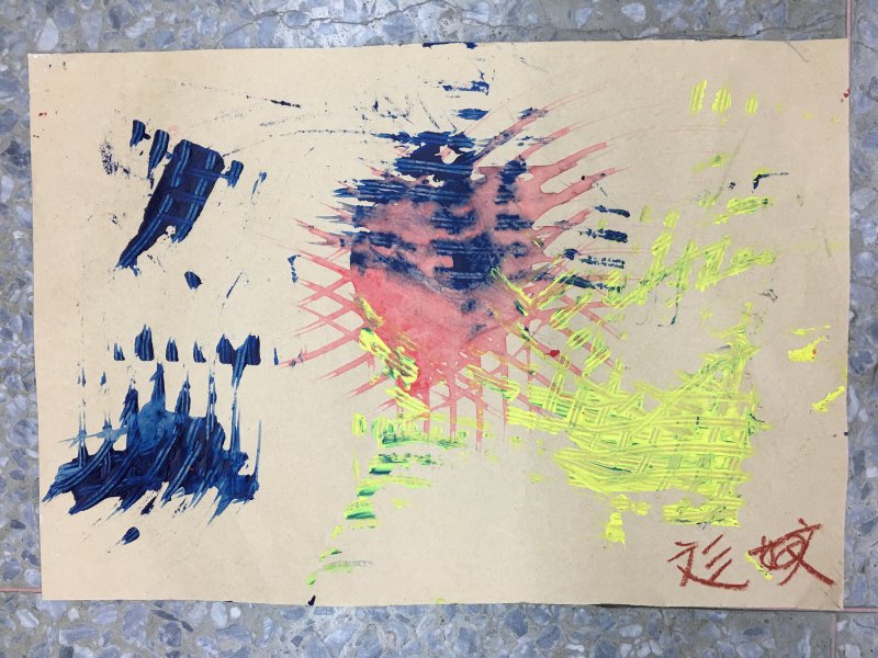 造型刮刀在牛皮紙上刮擠好的壓克力顏料