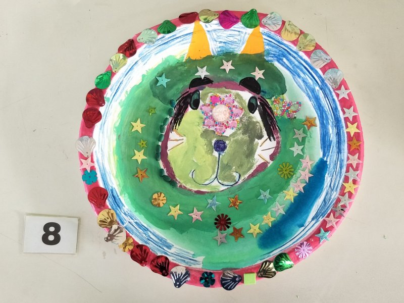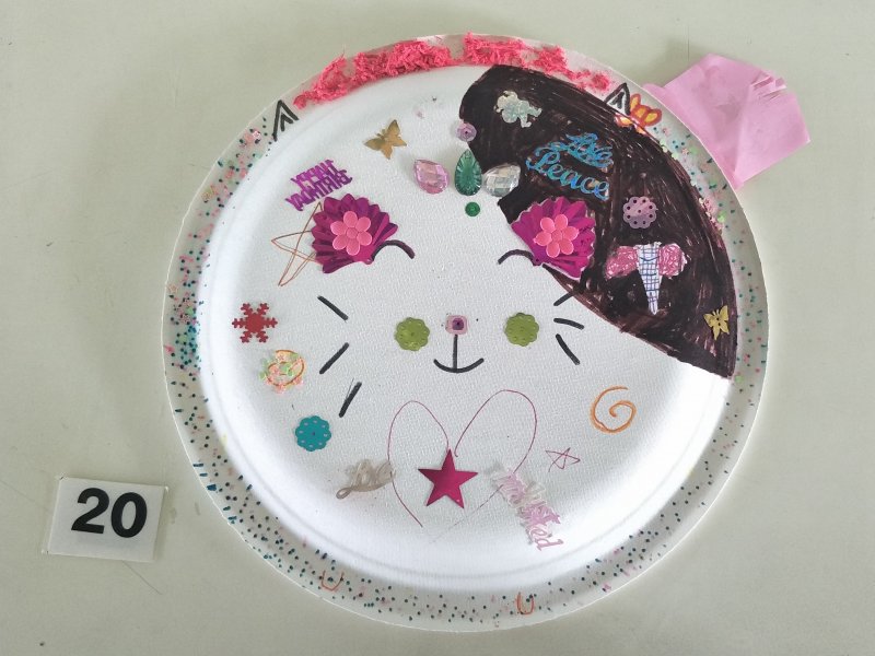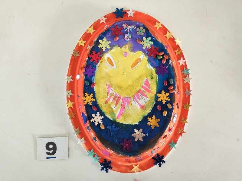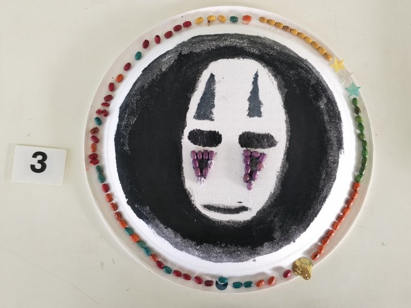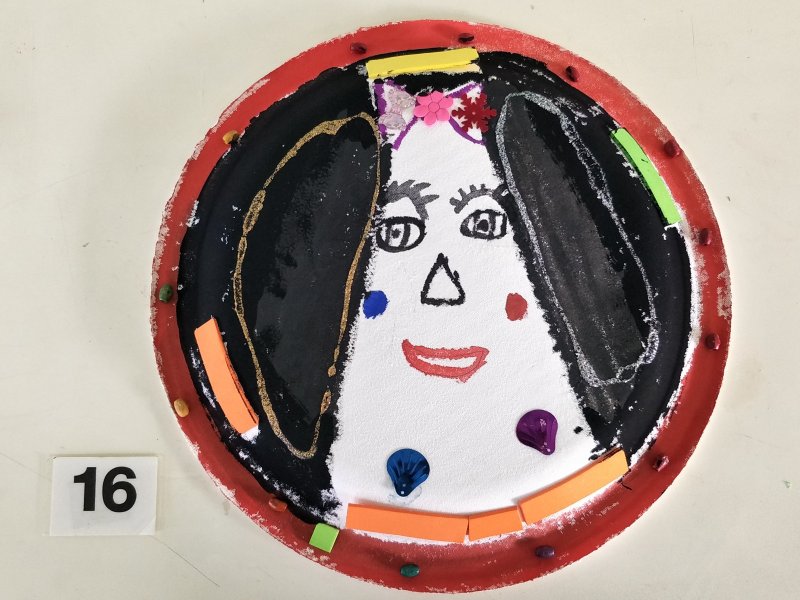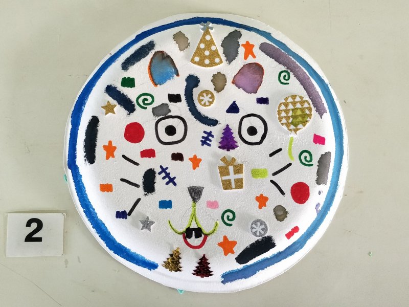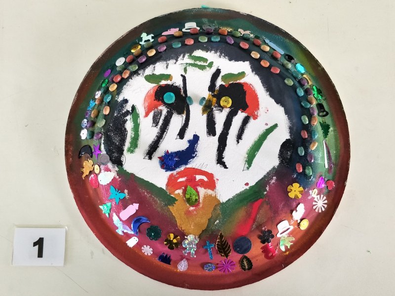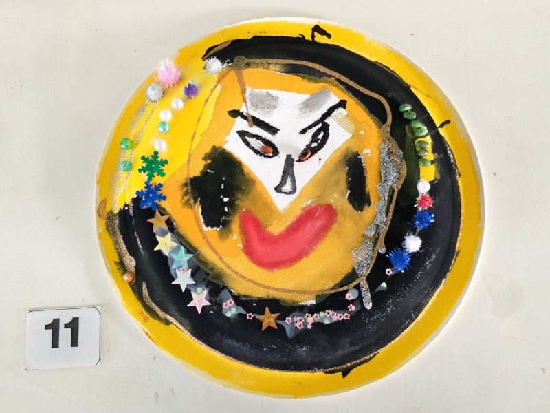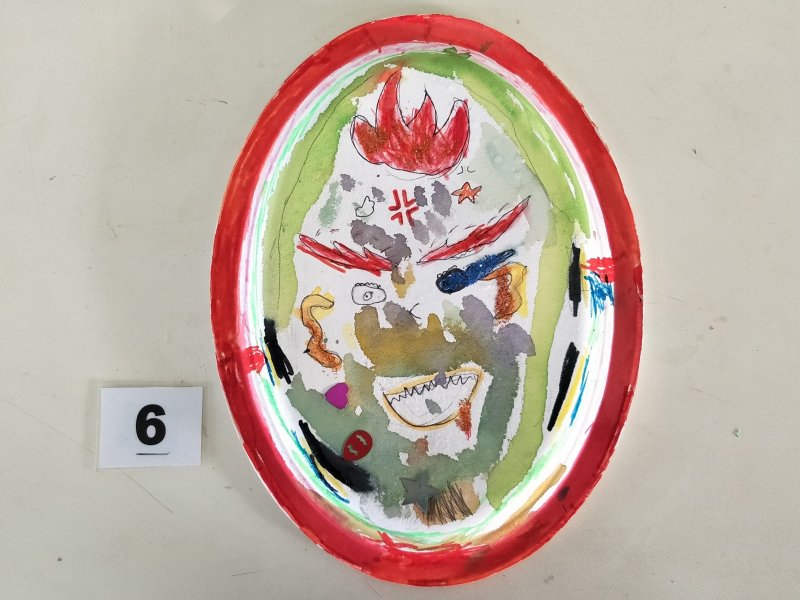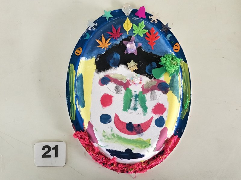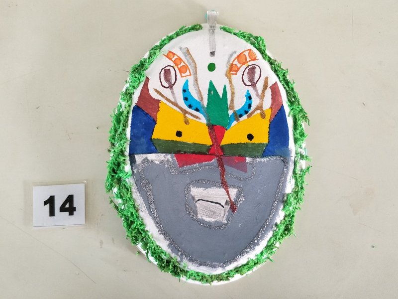 利用水彩或彩色筆為面具構圖上色,再加上各類亮片、紙漿,妝點出亮麗奇特的臉部表情。