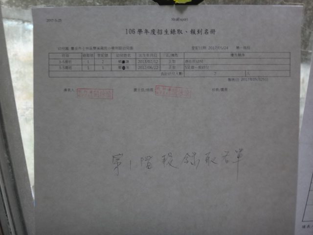 105 學年度 台北市士林區雙溪國小附設幼兒圓