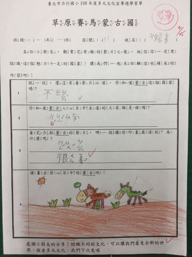 107 學年度 臺北市市立力行國小一年一班