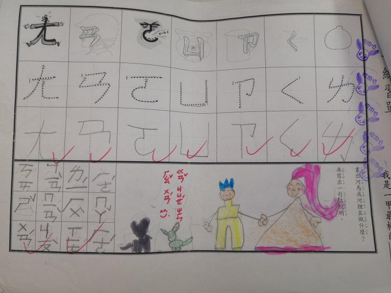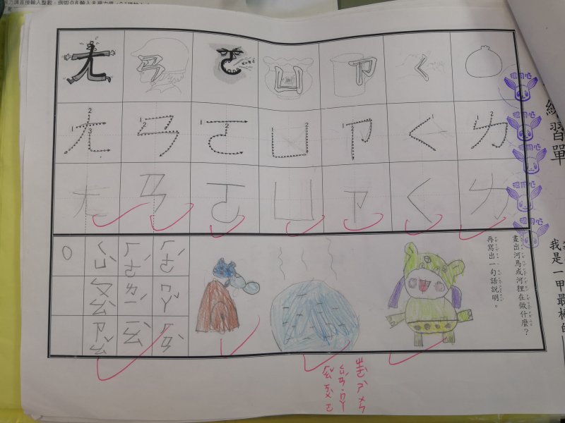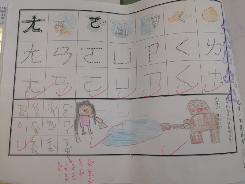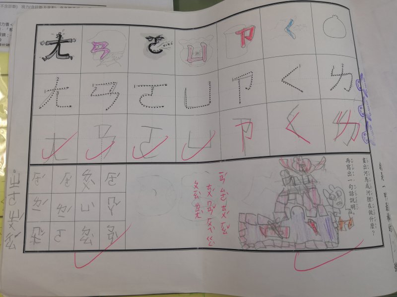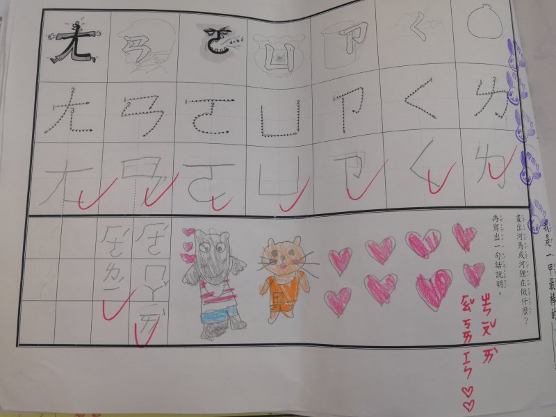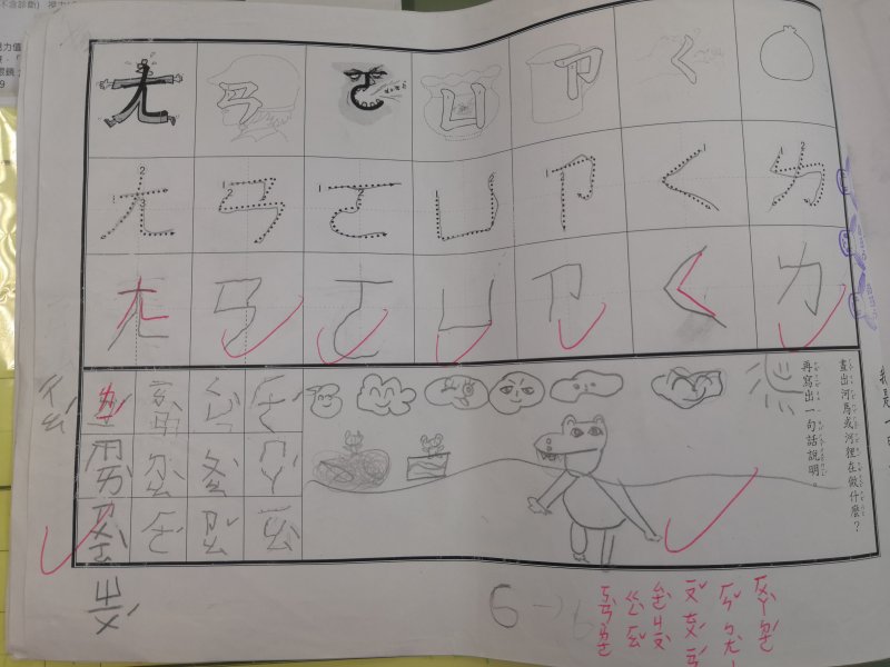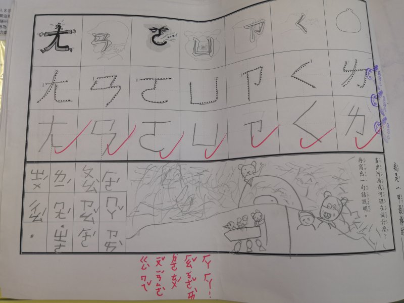 注音單的設計是為了符合學習注音歷程不同的小朋友,已經對注音琅琅上口的小朋友可以自由發揮寫句子,達到使用注音的目的;對於注音不太熟悉,則可以挑選課本上的句子來習寫,以達複習效果!加上畫圖,訓練寶貝們手不小肌肉的發達,其實是一舉數得呵!因此要請家長們多鼓勵小朋友多多嘗試、畫的圖要畫好畫滿,而不是隨便畫幾筆!相信寶貝們會越來越棒唷^^