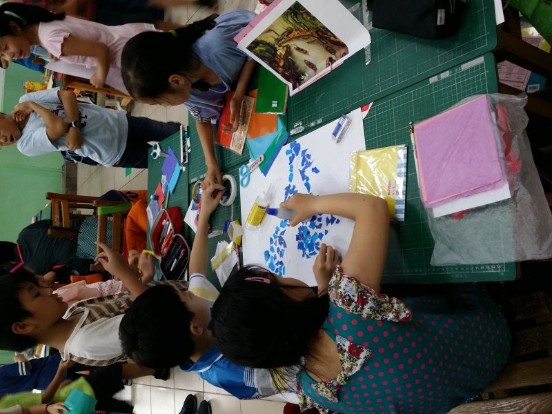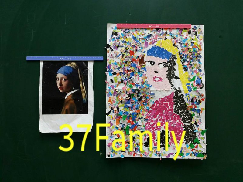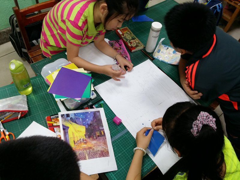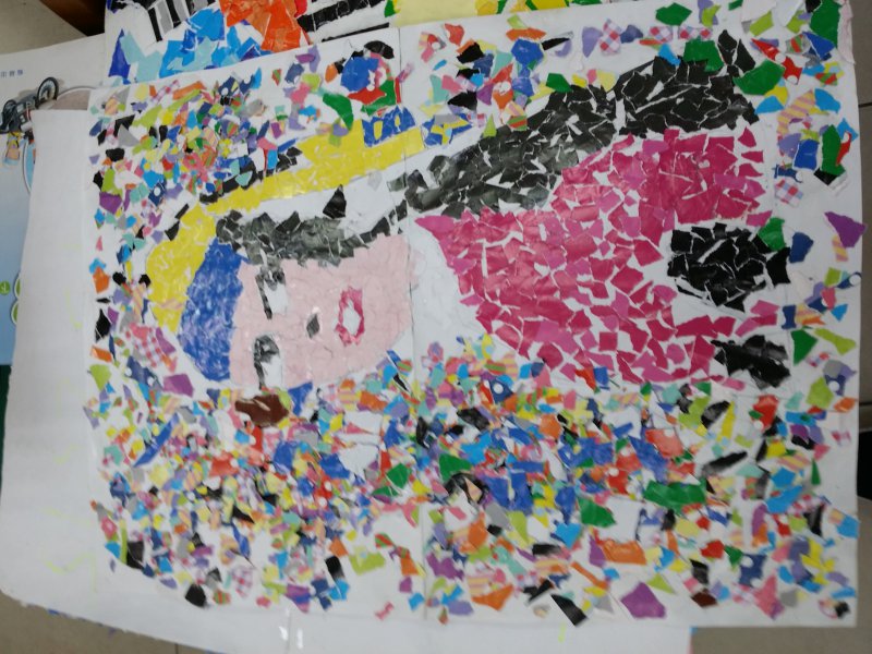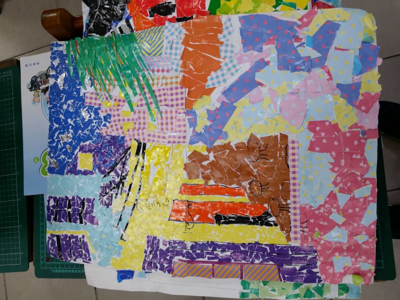 孩子們撕貼畫初體驗 花費將近一個月的時間,小組合作共同完成的撕貼畫喔!
