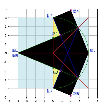分解(01)主要工作是找出點1到點9的 (x,y) 座標值, 再用LineString定義黑色箭頭區域, 並將圖形繪出