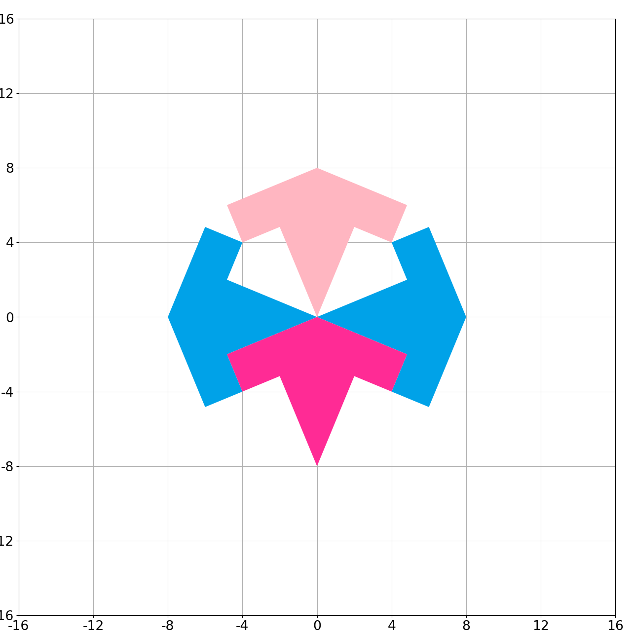 將右側箭頭(motif_3)以原點為旋轉中心, 左旋正90度, affinity.rotate(motif_3, 90, (0,0)), 得到motif_5