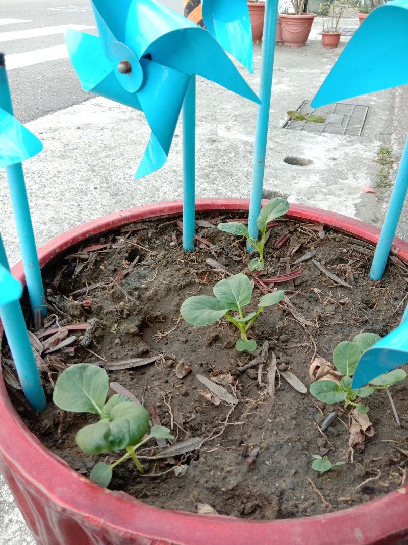 配合自然科課程,將學生在校園栽培的小白菜、空心菜等植物盆栽,觀察成長,以數位照片作成紀錄。