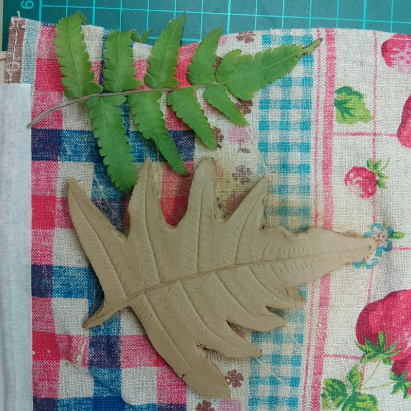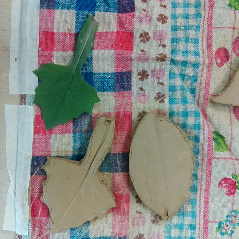 蒐集校園植物葉片,在陶板上拓下美麗的葉脈,
