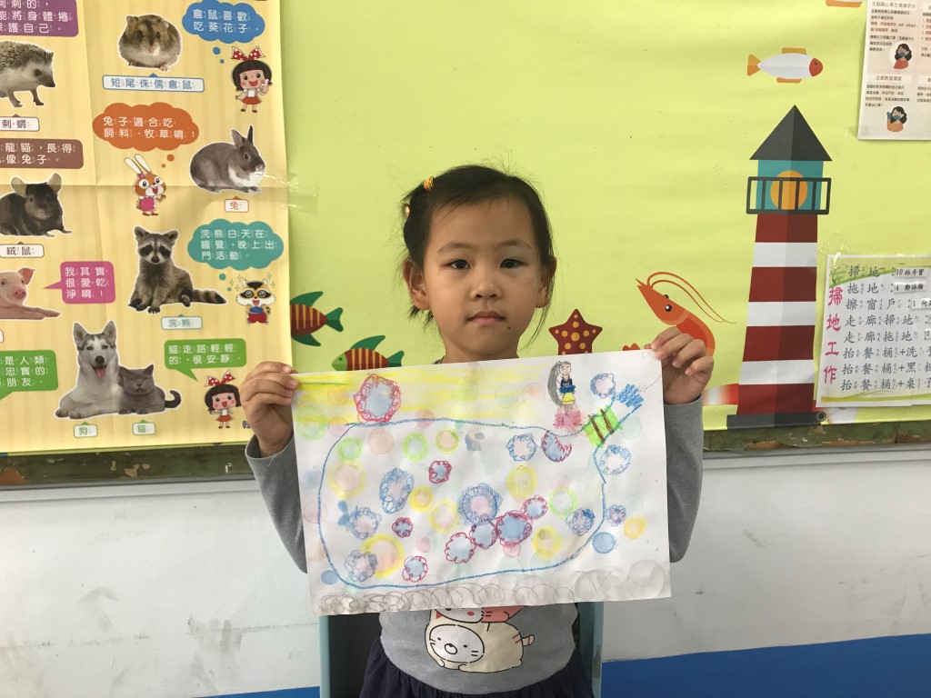 生活課吹泡泡,並將泡泡加上顏色,再做聯想。有的變花、有的變魚...,各式各樣,各具特色,一起來欣賞小朋友的作品吧!